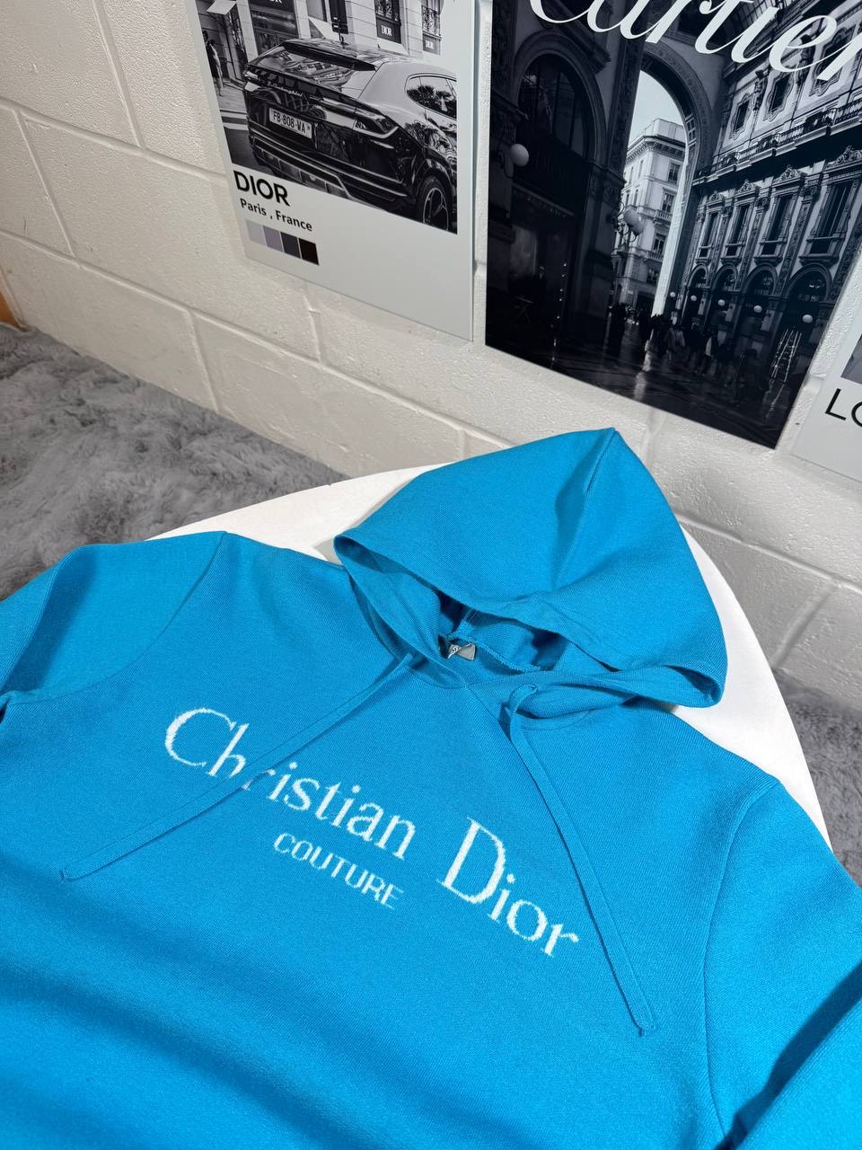 blue christian dior knitted hoodie