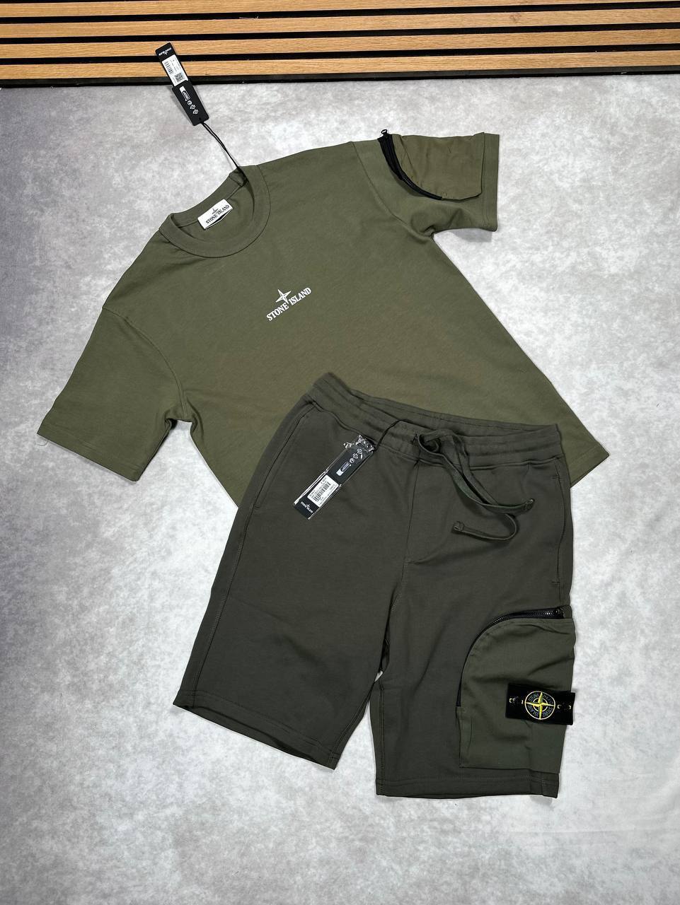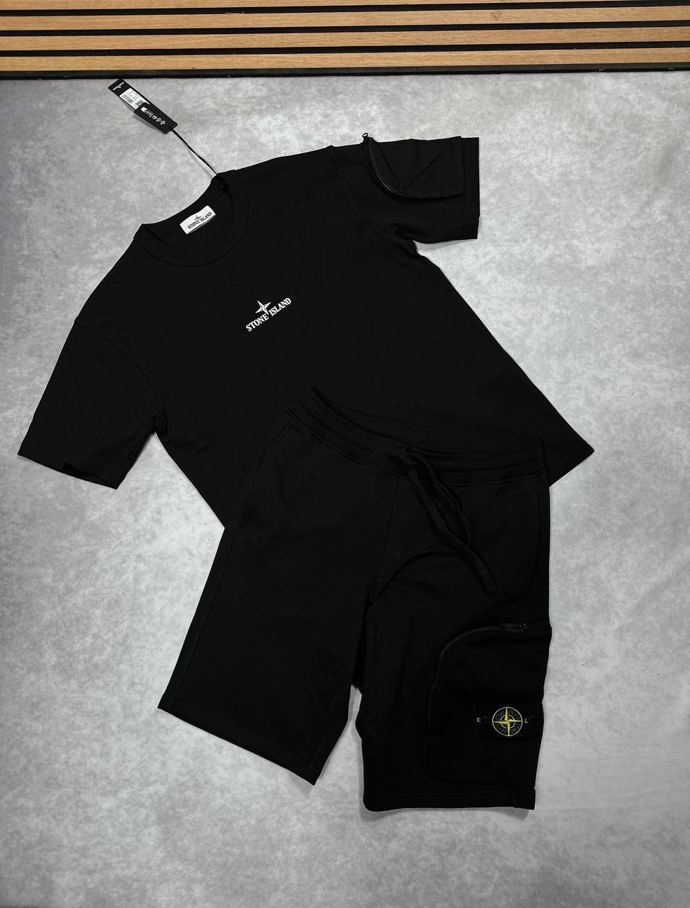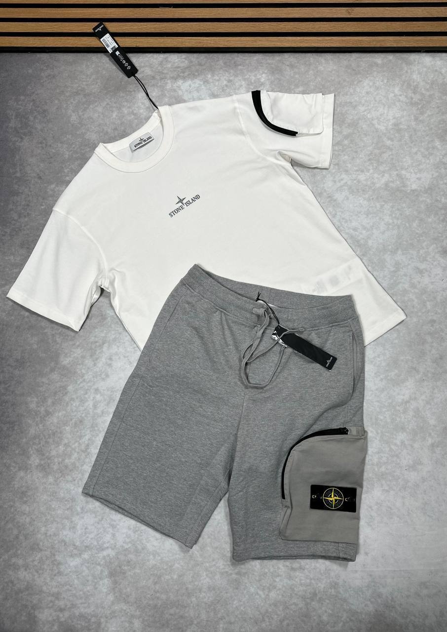 Stone Island Short Set – The Stone Island Short Set combines premium comfort with signature streetwear style. Crafted from high-quality fabrics, it features matching shorts and a top with the iconic compass logo—perfect for a clean, modern, and relaxed look.